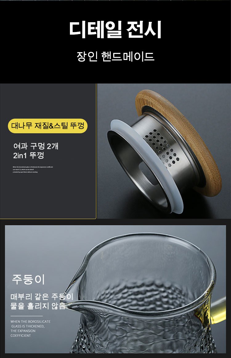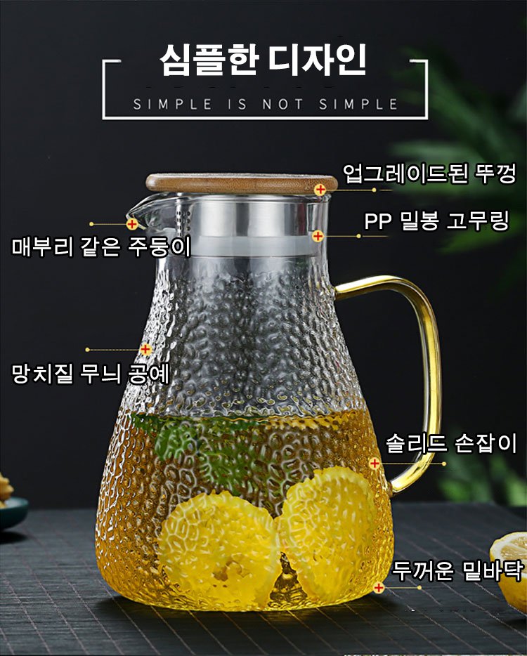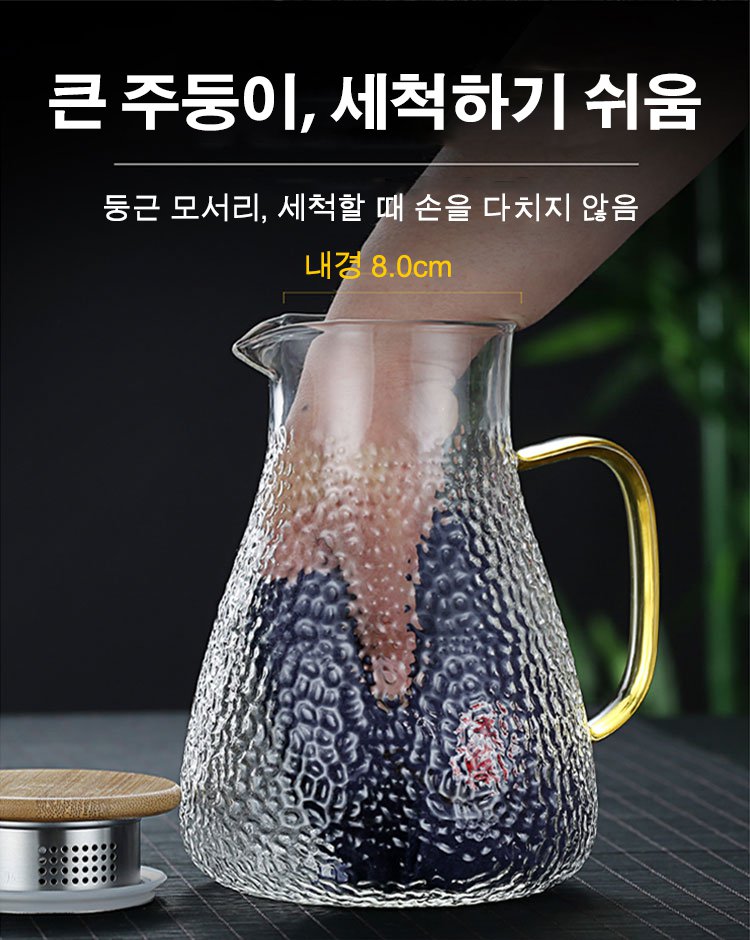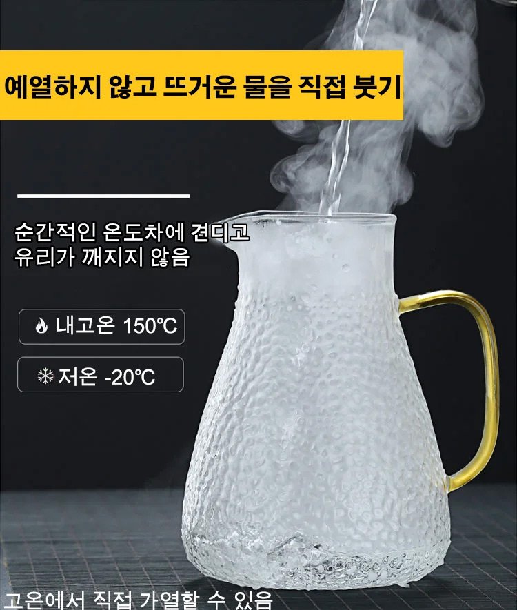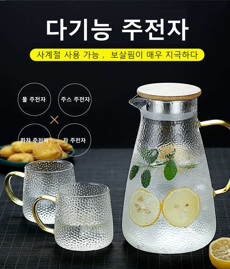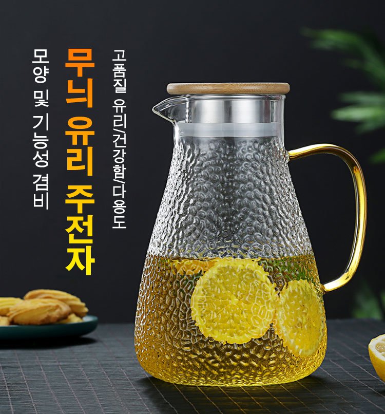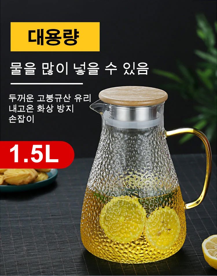두꺼운 고붕규산 유리, 투명하고 정교하며, 스타일리시한 무늬 디자인, 미끄러움 방지 손잡이, 1.5L 대용량~ 추가 구매시 ₩28,000